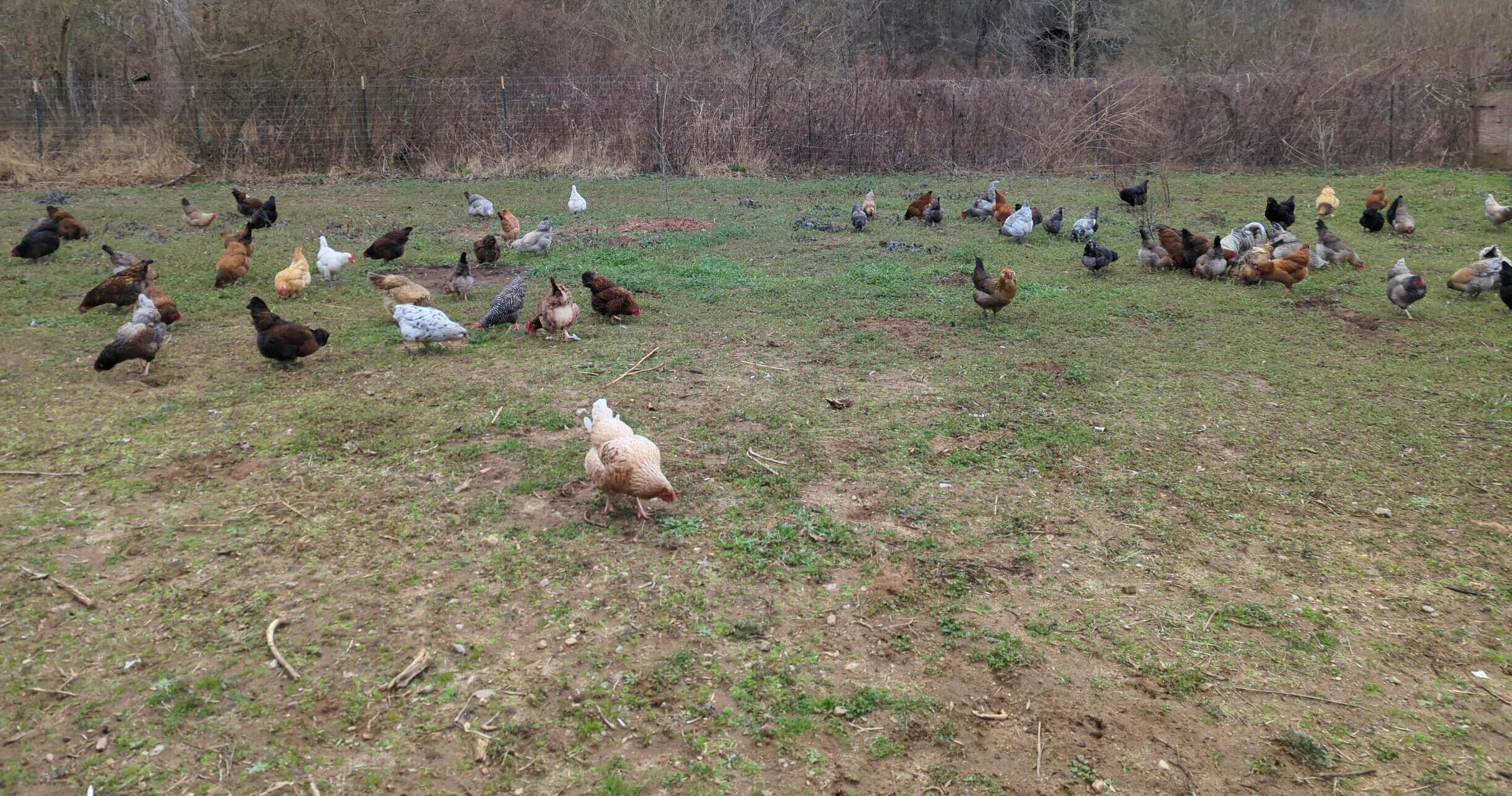 From dawn to dust, the chickens spend their days exploring and foraging..